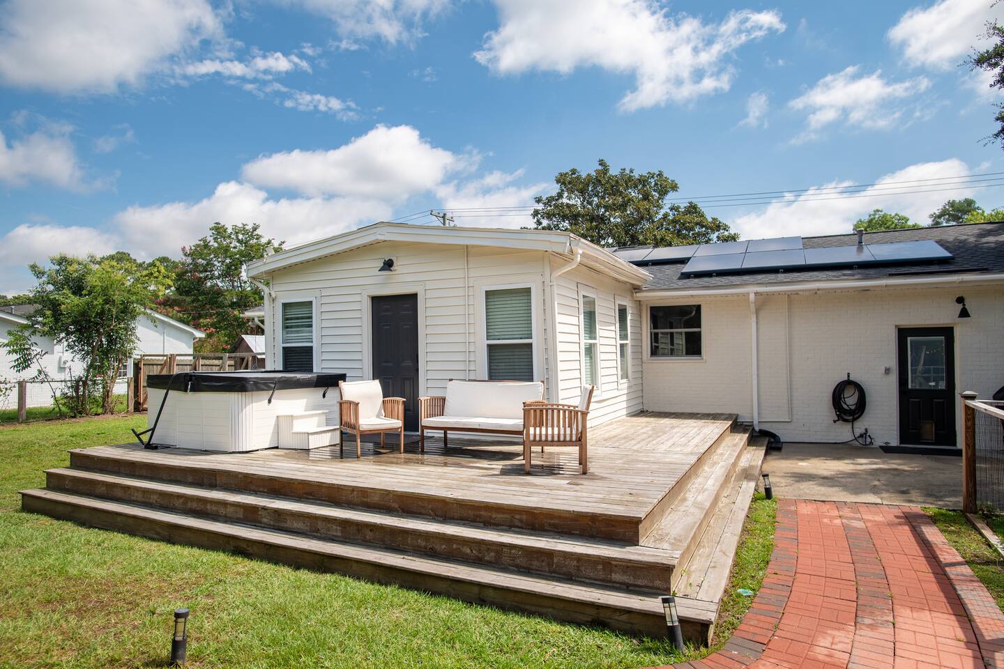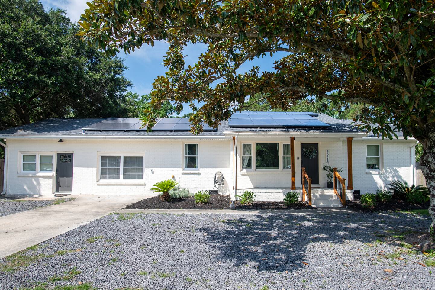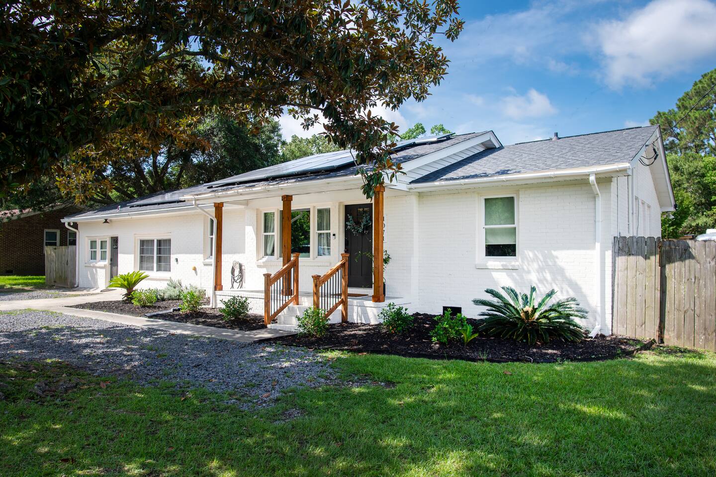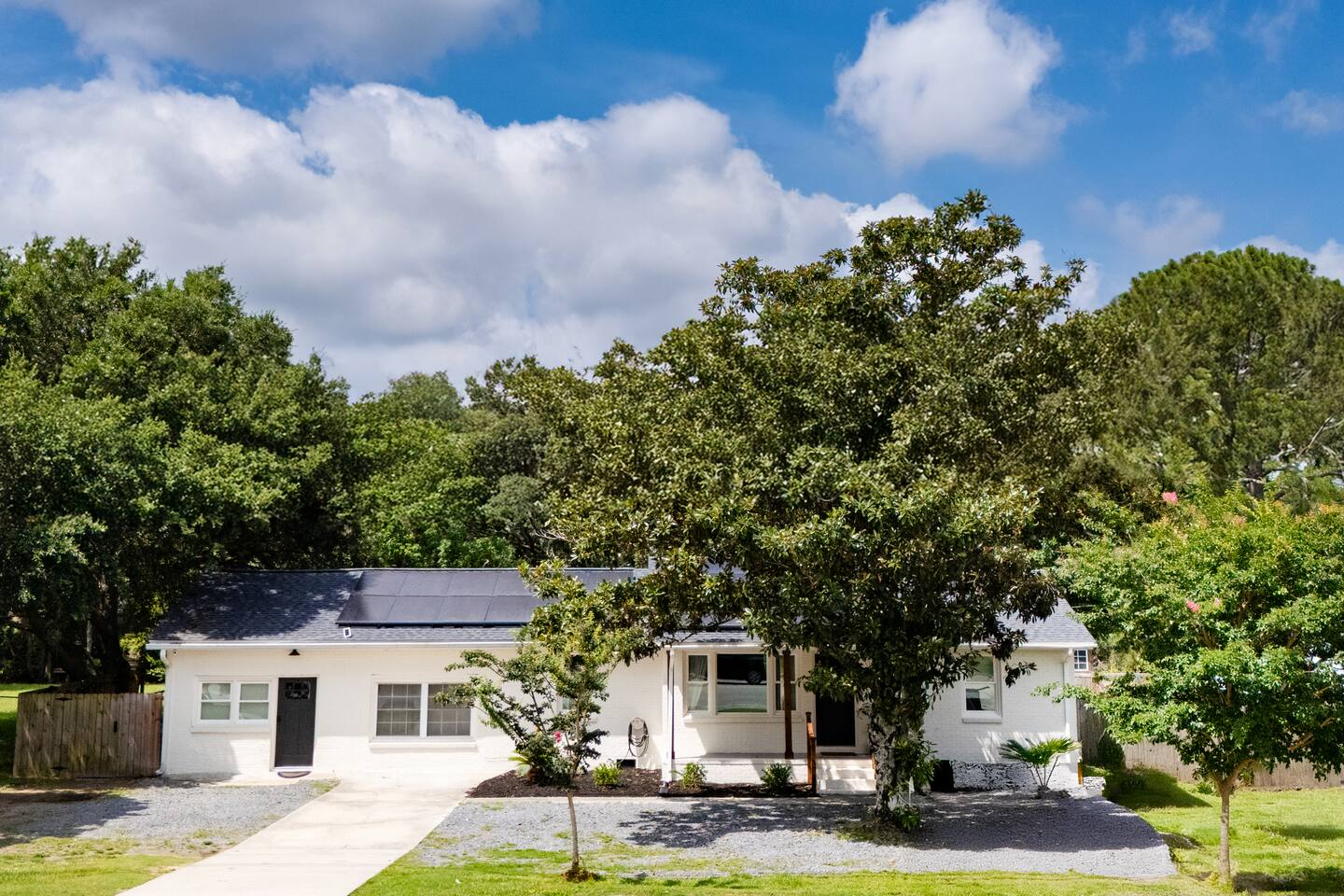 Centrally located for your beach getaway, or business trip. James Island is close to everything, and very easy to get to. You will have the whole main house to yourself, but the backyard is shared. We live nearby if you have any questions, or need anything. In addition to the bedrooms, full baths, full kitchen, game room and living room, our backyard is a wonderful place to hang out. We have a creek, a garden and fruit trees, a gas grill, a hot tub, and a fire pit (al backyard amenities are shared with other guests). So much to enjoy as you are waterfront. You are even welcome to fish in the waterway (catch & release), or use our kayaks for a jaunt down the estuary. We have smart TVs with many apps to enjoy. Free parking for up to 4 vehicles onsite.