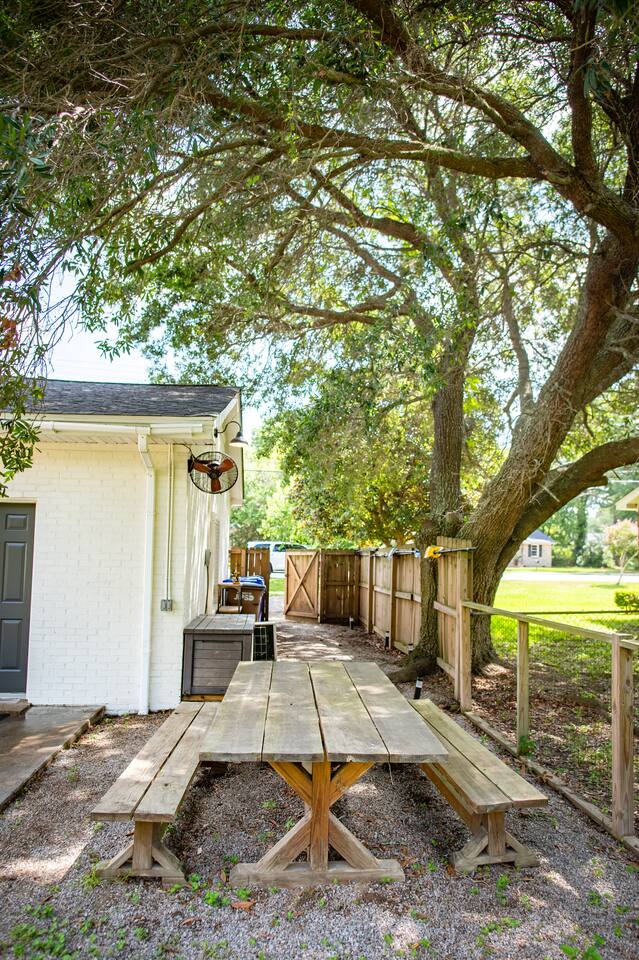 It is centrally located on James Island, about 10 minutes from Downtown Charleston, 15 to Folly Beach, close to historical landmarks, restaurants, museums, plantations, and tons of fun things to do. The closest beach is about five minutes down the road. We are close to shops, museums, restaurants, and entertainment. There is a grocery store two blocks away (with a Starbucks inside). One thing to note: We are on a busy street. Please do not book if being on a busy street will bother you, as there is nothing we can do to change this, and bad reviews are unfair based on our location. Most of our negative reviews have been because of the busy street, which we cannot control. All we can do is be very clear about it, and request that because our guests know this before booking, that they do not leave a negative review based on something we cannot control or change. Thank you for your understanding with this. Most of our guests have given us glowing reviews "The Best Airbnb I've stayed in for my entire 3,000 mile road trip," etc. I promise you will love our place, including our peaceful and serene backyard. But if busy streets are an issue, please don't book our place.